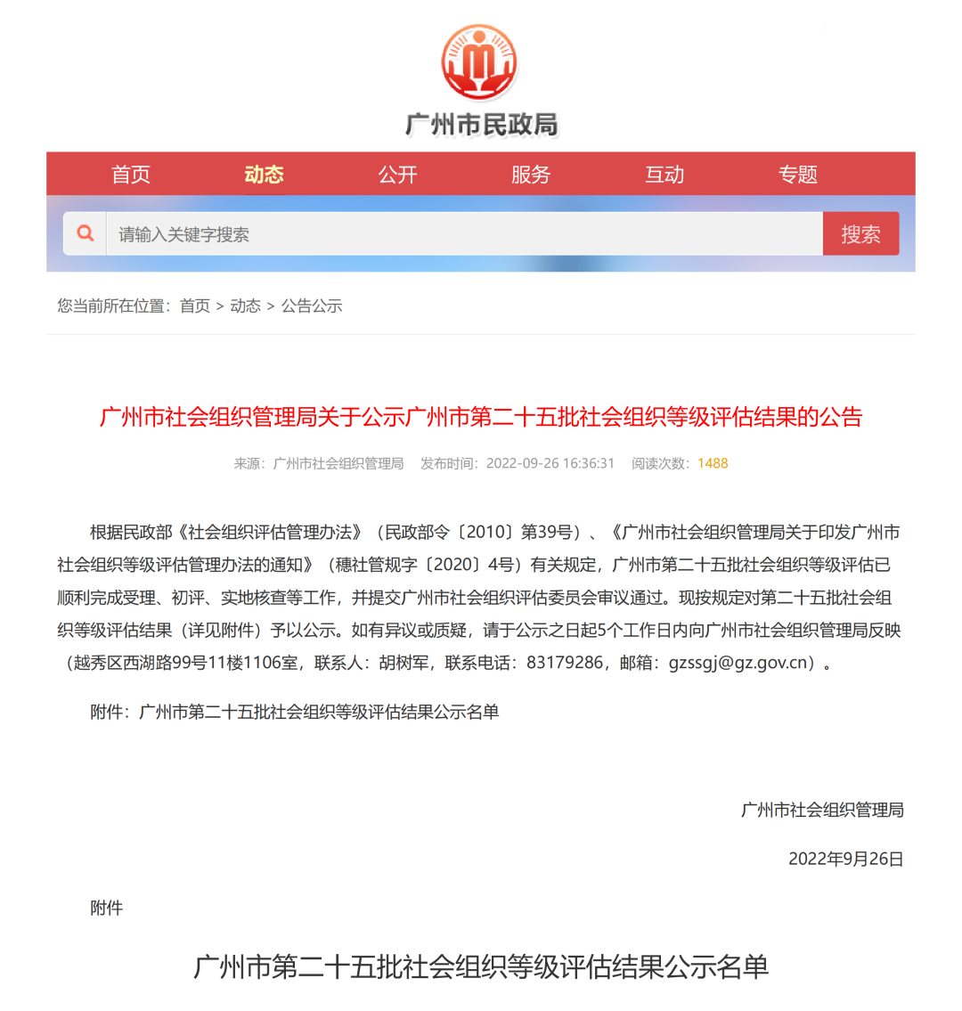 根据民政部《社会组织评估管理办法》(民政部令〔2010〕第39号)、《广州市社会组织管理局关于印发广州市社会组织等级评估管理办法的通知》(穗社管规字〔2020〕4号)有关规定,广州市第二十五批社会组织等级评估已顺利完成受理、初评、实地核查等工作,并提交广州市社会组织评估委员会审议通过,广州市新新济困公益基金会荣获广州市社会组织评估等级AAA等级。
